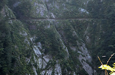 森を抜けると久し振りの崖道。この辺は谷底まで50mぐらい(かな?)