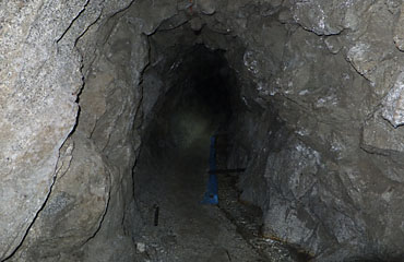 トンネルの中の様子。体を屈めていないと天井に頭をぶつけそうな高さだ。