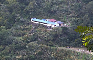 そんなスリルとサスペンスを4時間ほど味わったところで阿曽原温泉小屋が見え始める。 小屋が見えたところで1日目のスリリングなハイキングは終了し、この後15分ほど山道を下れば小屋に着く。