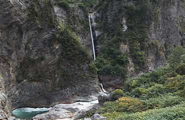 ↑大ナメ滝。直線的に落ちる様子は、「お見事!」という他ない。