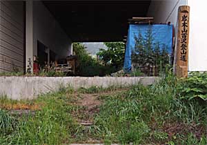 ここまで桜林をくぐってきたコースは、スキー場の建物をくぐってゲレンデに出る。500mほどゆるやかなゲレンデを登り、左に