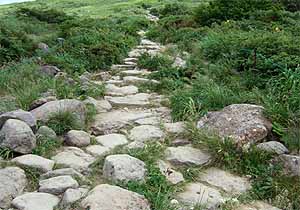 いる。短いとは言え、中仙道・馬籠宿や熊野古道の石畳も真っ青になりそうな第1級の仕上げ具合だ。