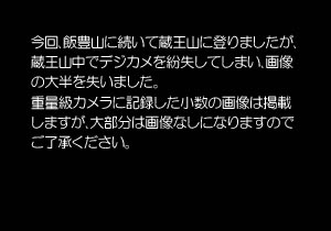 にしたのはこの時が最後だった。どうやらここに置き忘れたか、この後の歩行中に落としてしまったようだ。数十枚の画像を失った