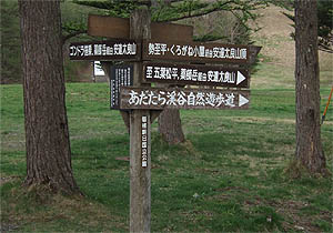 4〜50分進むとなだらかな丘陵の出る。勢至平だ。ここで丘陵のなだらかな尾根を進むコースと、谷筋のくろがね小屋を経由する
