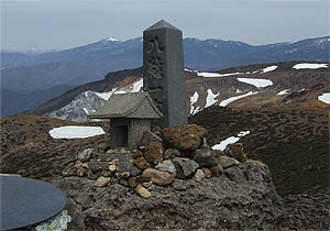 薬師岳では大勢の登山者やハイカーが休憩していた。大半は軽装のロープウェー利用者だ。下ってきた方向を振り返ると安達太良