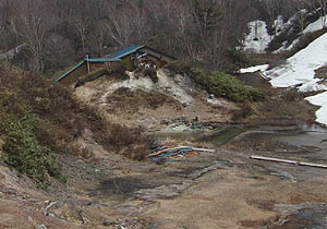 中の湯の避難小屋には、これといった用件はなく近付くことはなかったが、遠目にはかなり荒れているように