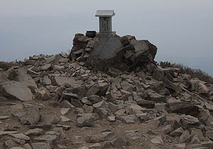 山頂は潅木も途切れ、砕けた岩石を積み重ねたような風景が露出している。裏返せばここだけ周囲を遠望する上で、