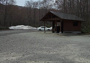 車は1台も止まっていない。広々とした駐車場を独り占めにして身支度を整える。『熊に注意!』の看板に、