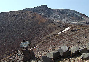 によっては硫黄臭が漂って来る。火山ガスの影響か、他の山と比べて森林限界はかなり低いようだ。