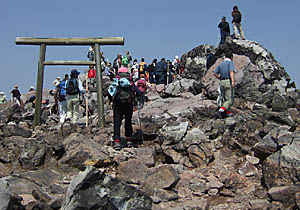 行者など多彩な顔ぶれが続々と登ってくる。山頂に到着した頃には、その数は大雑把に見て200人余り、