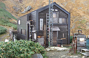 小屋は見たところ新しく、最近改築されたようだ。中を覗いて見たいが、入口にはガッシリと雪囲いの処理が行われていてどうにも