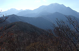 枝折峠から頂上を目指すコースは、全ルートの9割ほどが尾根のピークを辿る。従って、常に左右どちらかの景色を目にしながら