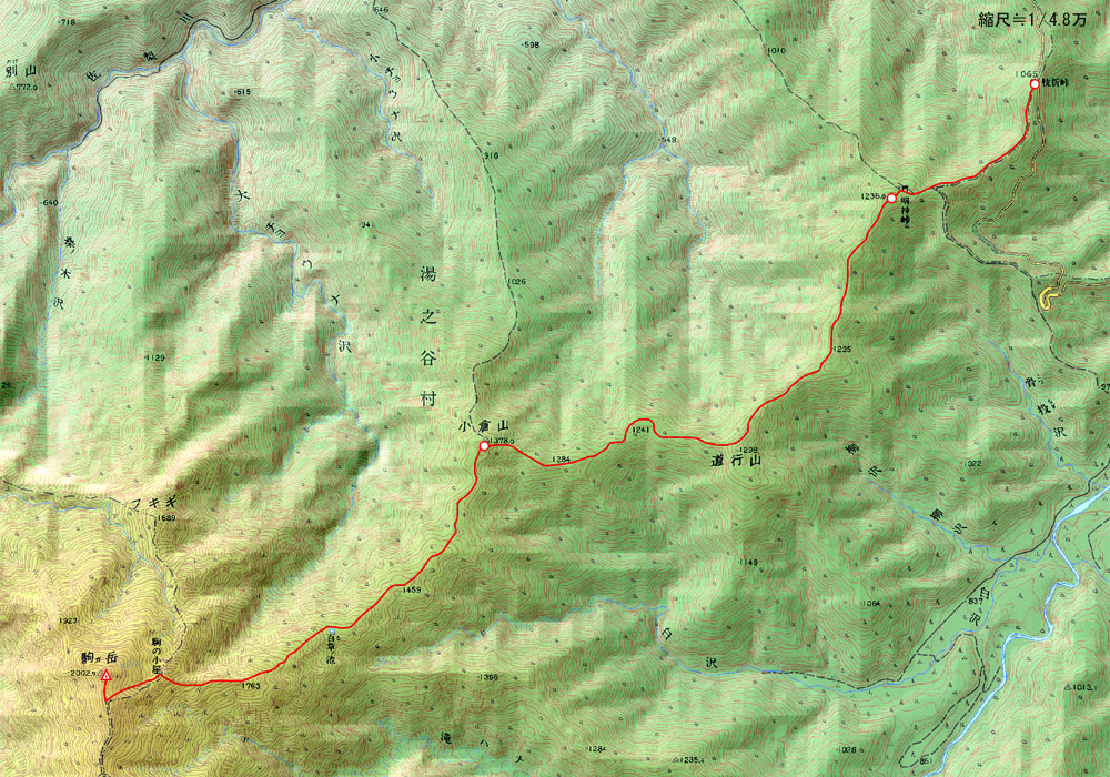 山頂への往復に辿ったコースを目で追ってみる。長いコースだったが、夏の山歩きと違って暑さによる消耗がないためか、不思議と