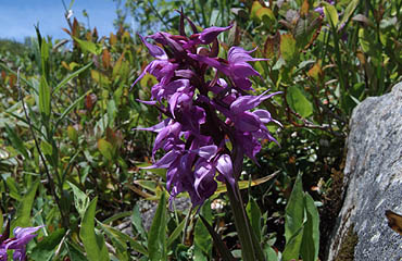 山頂部は春の花から夏の花にバトンタッチを終えたところで、昨今数の減少が著しいといわれるハクサンチドリが目を引いた。
