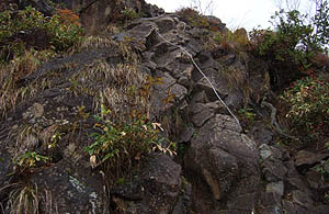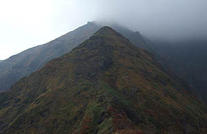 "ラクダの背"まで来ると、前方・山頂方向の視界が開けるが、上空はガスに巻かれて殆ど見通しが利かない。