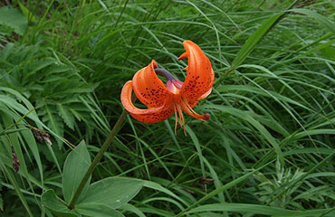 この日も下りで働く筋肉はまだ未使用なので、人が変わったように快適なペースで下る。コース脇にはいろいろな高山植物が 見られるが、相変わらずのガスで光量が足りず、写した画像も使えないものが多かった。