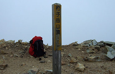 幸い雨脚が激しくなる様子はない。視界50m前後の稜線を、早足に辿って次を目指す。