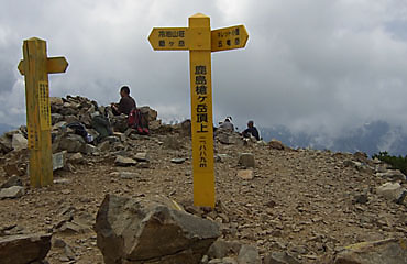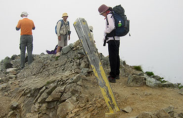 人波が引くのを待って型通りの写真を撮り、ついでに手近な登山客にお願いして