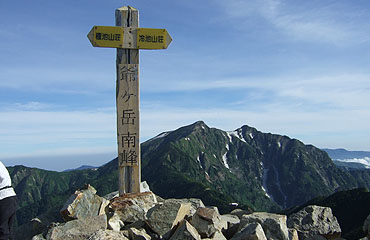 我々が辿って来た北からの登山者と、メインルートである扇沢−爺ヶ岳を経由する登山者が合流して大賑わいである。明日の日曜 はラッシュ並みに込み合うかも