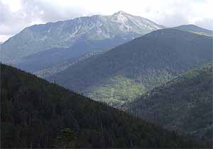 登山口から高度差500mほどは、樹林帯を縫って進むやや急なコースだ。露出したシラビソの根が網の目状に入り組んだところや、