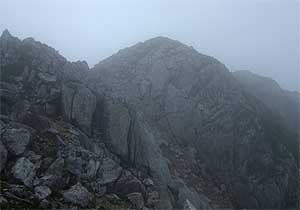 肩で息をしながら寸取虫歩行を繰り返す。縦走ゆえのいつもより重いザックが、ここでは恨めしい。加えて、大きく砕けた石が積み