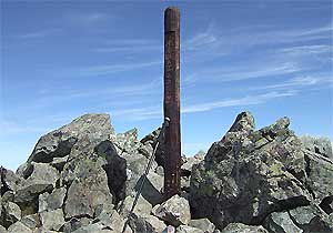 広々とした山頂は、整地したかのように平坦である。先着の3人の登山者が談笑しながらくつろいでいた。漏れ聞こえてくる話を 要約すると、今日の好天と絶景に至って感動しておられる様子。確かにやや下から仰ぎ見る山々も悪くはない。が、"暇人"はあくまで そうした美しい山々のピークを目指して悪戦苦闘する道を選ぶ。