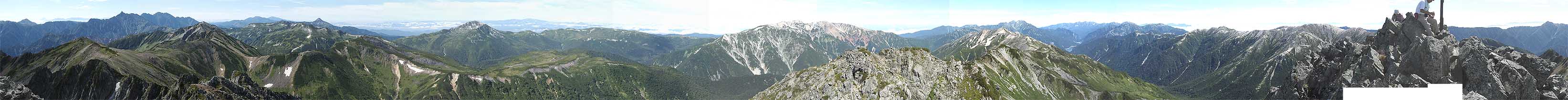 下は、水晶岳山頂から見た 南東 →(時計回り)→ 南東 のパノラマ