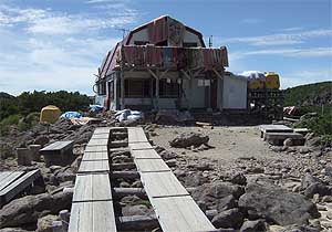 こうしてノンビリ、ウットリ(?)山野草を楽しみながら湿原や沢沿いのコースを抜け、今回の登山では最後の登りに差し掛かる。 太郎平小屋までの高度差250mほどを、約1時間かけてゆっくり辿り、8:48小屋に到着。ここで20分余り休憩をとる。
