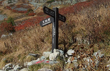 ↑ 天狗原方面への分岐点。ここから天狗原経由、南岳を目指す。