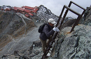 標高2700m付近で、横尾尾根につながる尾根に出るが、ここからはクサリとハシゴが点在する急登になり、しんどさは更に増す。