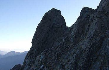 時間が遅いこともあって、この時点で頂上には誰もいない。少し遅れて2人の登山者が登って来ているが、ここまではもうしばらく時間 がかかりそうである。しばらくは貸切り状態である。