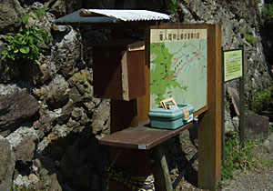 登山口にはごく簡素な入山届受付ポストが設置されている。A5サイズの用紙に住所(要求は県名のみ)、氏名(同じく性のみ)と 入下山コース、予定時間などを記入して投函し、6:30歩行を開始。