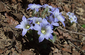 ここまで登って来るとニリンソウの姿は全く見られない。注意して歩くとフデリンドウ(左)や