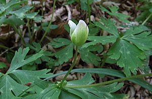 清滝小屋の前後では、ニリンソウ探しを再開する。これまで各地で見てきたニリンソウは、ツボミの時期はほんのりピンクを帯びて いるものが圧倒的に多かったが、この山のものは緑色を帯びているものが多数存在する。緑色のニリンソウがよく見られることと 関係があるかも知れない。