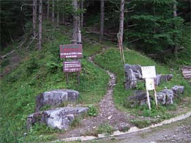 35分ほどかかって豊口コース登山口に到着。ここからが本格的な山道だ。間伐された明るい唐松林を縫って、これまた手入れの