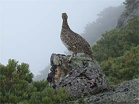 頂上まであと十数mというところで、雷鳥が出迎えてくれた。親子だ。わずか3〜4mの距離でカメラを向けても、飛び立つ様子