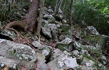 急勾配の登山路は30分ほどで通過し、僅かばかり岩場を通過した後は緩やかなコースが延々と続く。