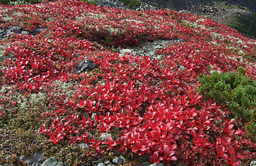 更に山頂に近付くと、地面を赤く染める紅葉が目に付くようになった。草紅葉か?、と何枚かカメラに収めたが、