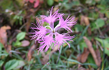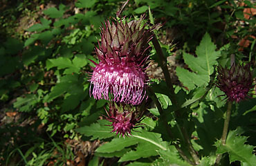 フジアザミは富士山周辺に分布する、わが国最大のアザミで、大きいものは直径10cmに達するとか。 |