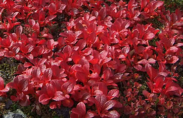 ↑ 山頂付近の鮮やかなウラシマツツジの紅葉 (Clickで拡大) |