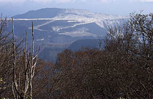 山頂からの眺めは、わずかに北方向に開けているだけで、三方はクマザサと樹木に遮られている。芽吹きが始まっていない今は、