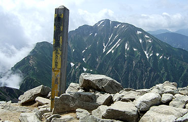 人気の山だけに山頂の広場は大勢の登山客で賑わっている。標柱の前は、入れ替わり立ち代り記念写真を撮る人で、順番待ちが 出る有様である。ただ感心なのは、そうした事情に配慮してかどうか、標柱の周りに陣取って休憩する人は一人もいない。
