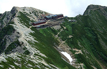 ↑ 唐松岳から唐松山荘を望む