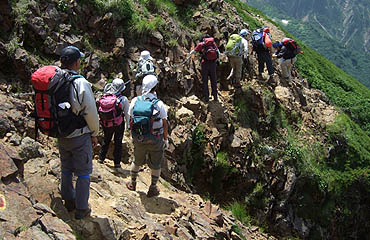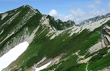 不帰キレット(切戸)は、鹿島槍の近くの八峯キレットや穂高の南岳大キレットと並んで、三大キレットとされていて、 多くの登山者を引き付けるスリリングなポイントである。