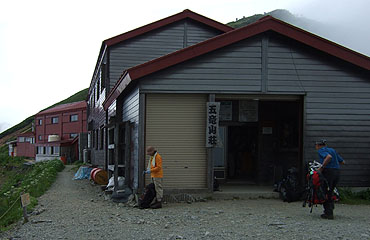 明日アタックする予定の五龍岳が、ここに来てやっと大きく見え始めた。ガスは多目ながら、天候は少しずつ好ましい方向に 変化しているようだ。